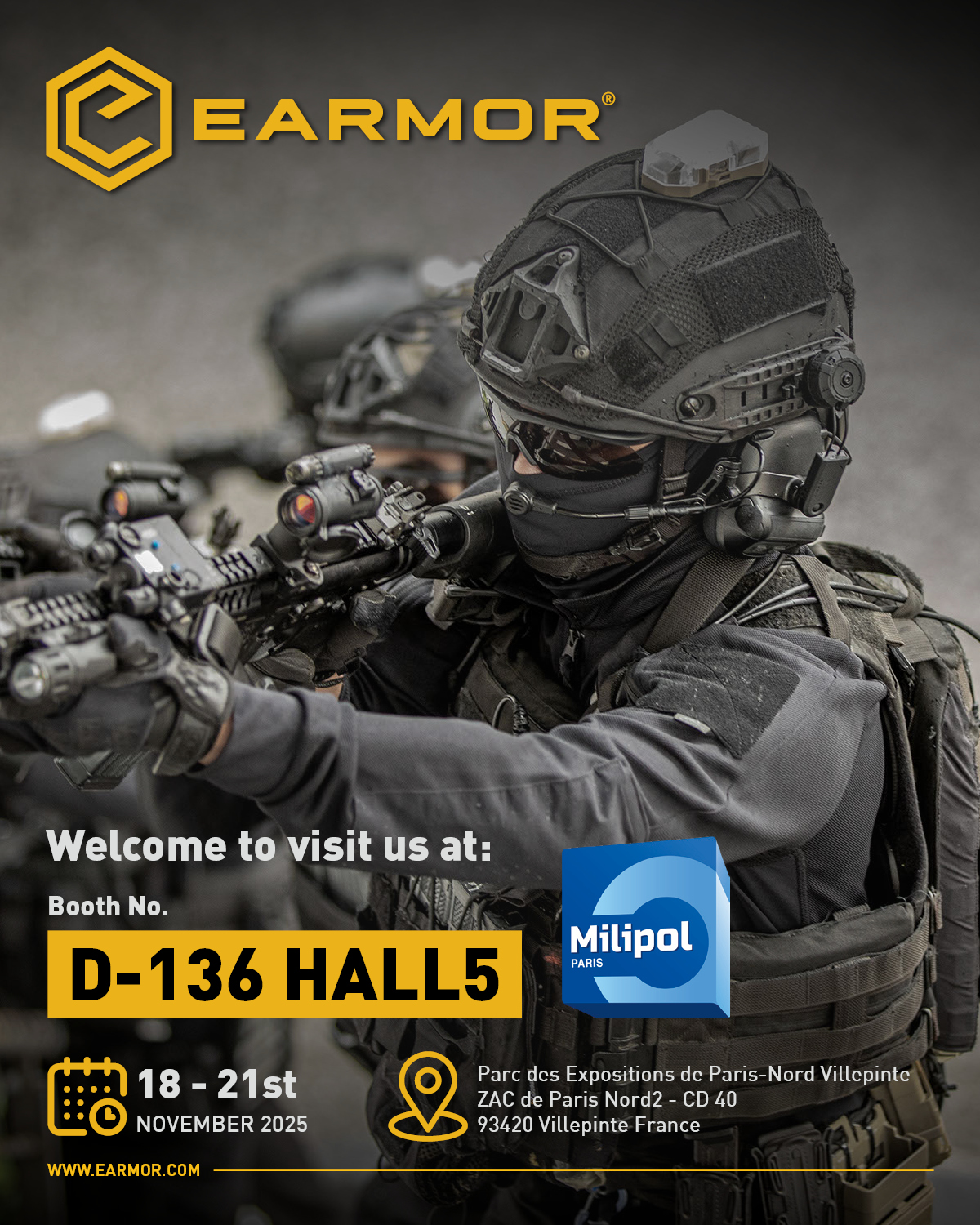 Don’t miss the chance to experience EARMOR’s cutting-edge hearing protection solutions! Visit our booth at Milipol Paris 2025 to try our products and speak directly with our expert team to learn how we can support your tactical and professional needs. We look forward to seeing you there!