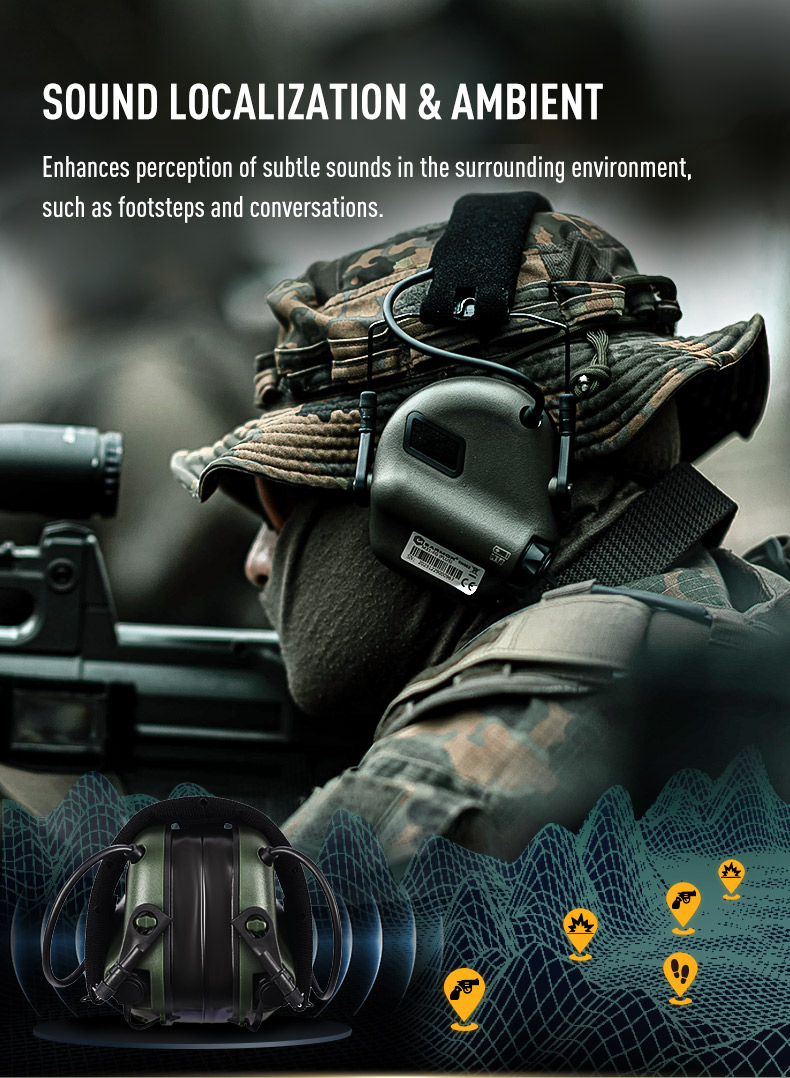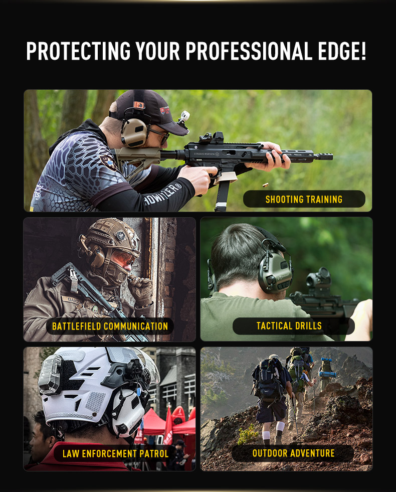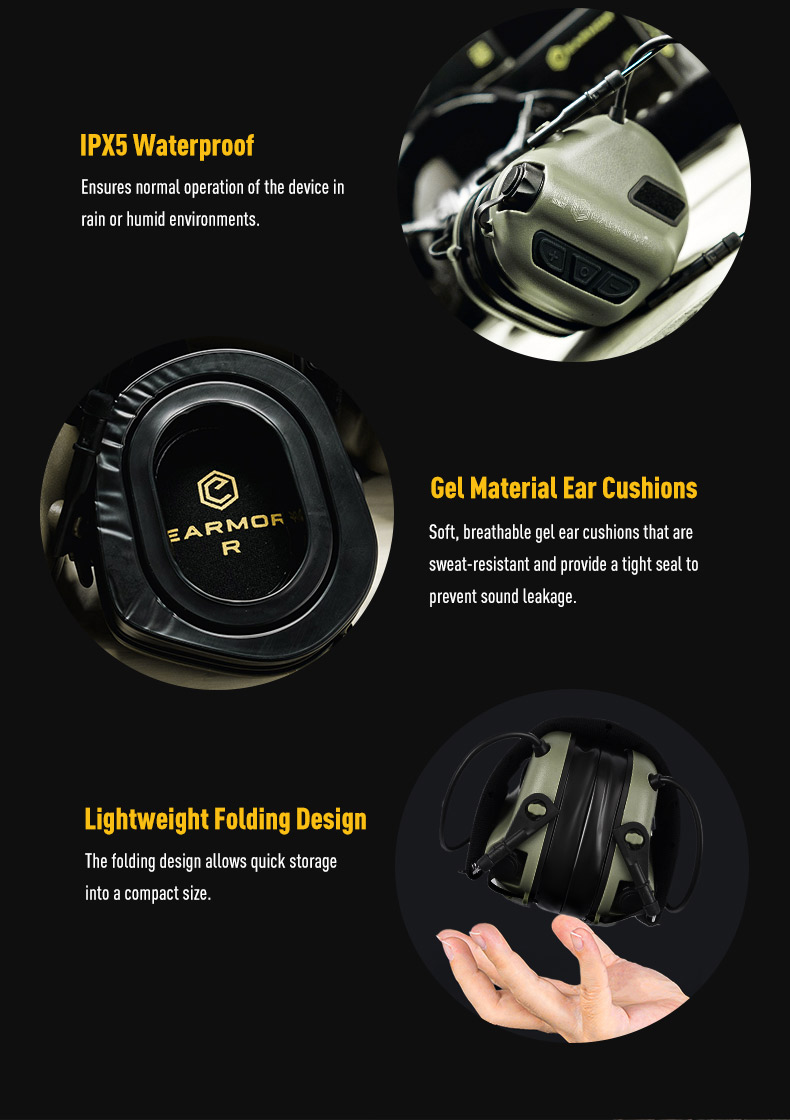 Gel Ear Cushions for Comfort: The headset is fitted with premium gel ear cushions that provide exceptional comfort during long hours of wear. The sweat-resistant and sound-leakage-proof design ensures a secure seal around the ears, maintaining effective noise isolation while reducing fatigue — ideal for extended use in both indoor ranges and outdoor missions.