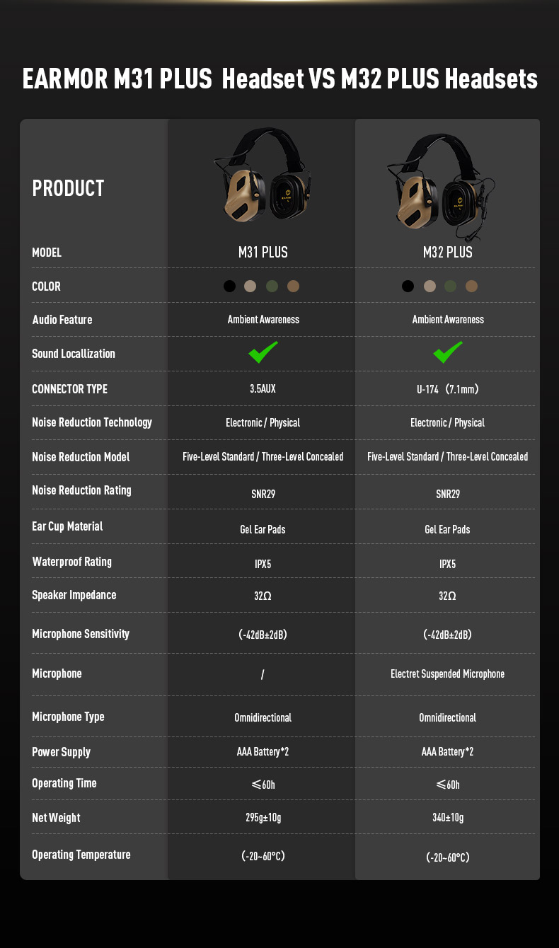 Versatile Audio Connectivity: Featuring a 3.5mm audio input port, the M31 PLUS easily connects to smartphones, radios, or other compatible media devices. Whether you’re using communication systems in tactical operations or enjoying music during training, the headset offers seamless integration and reliable sound performance.