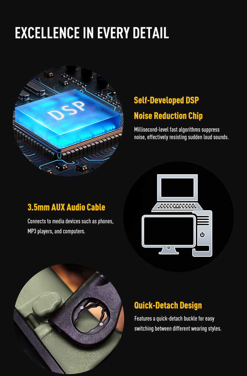 ≤0.1s Noise Suppression — NRR 22dB Protection: Equipped with a Noise Reduction Rating of 22dB, the M31 PLUS digitally suppresses impulse noises exceeding 82dB in less than 1 millisecond, effectively protecting your hearing from gunfire and other high-decibel sounds. The advanced circuitry ensures smooth and natural sound recovery, allowing you to maintain focus and awareness even in dynamic shooting environments.