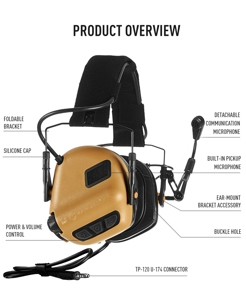 Detachable Condenser Microphone: The headset features a detachable high-sensitivity condenser microphone that can be easily removed or repositioned to suit different user preferences and operational needs. Whether you’re communicating in high-noise tactical situations or using the headset for range training, the flexible design ensures clear voice transmission and optimal comfort for various scenarios.